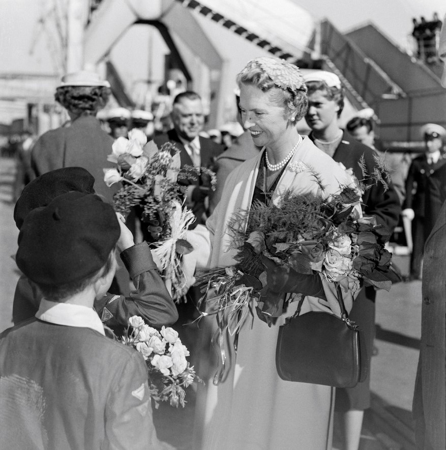 Prinsessan Sibylla av Sverige på besök i Helsingfors 8.6.1955. Fotograf UA Saarinen. Bild: Journalistiska bildarkivet JOKA, Samling UA Saarinen. Museiverket.