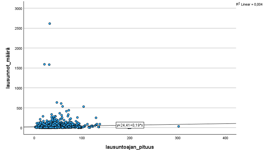| Spearman’s rho | lausuntoajan_pituus | Correlation Coefficient | 1,000 | 0,211** |