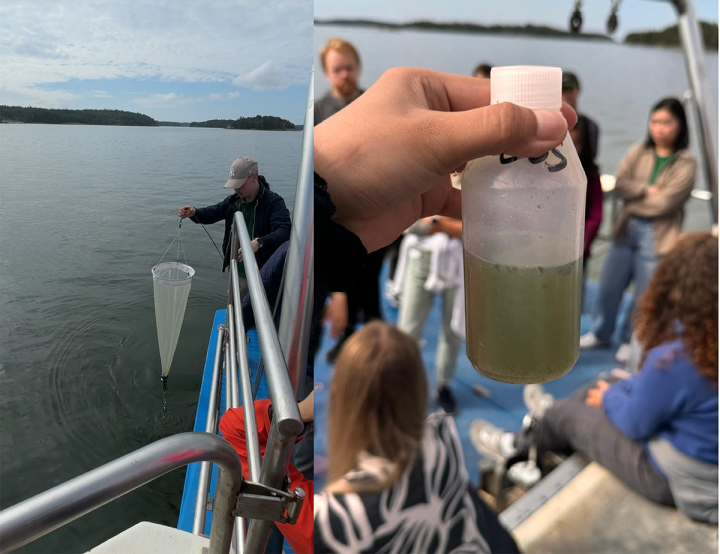 Our voyage to Seili included three stops along the way for hands-on sampling exercises. The crew guided us on how to collect water samples, destined for labs to assess water quality and pH levels. They introduced us to tools such as the Secchi disk for measuring water clarity and a net for gathering plankton and identifying potential blue algae. Every part of this process was new to me, but the crew was incredibly patient, answering our many questions with enthusiasm and expertise.